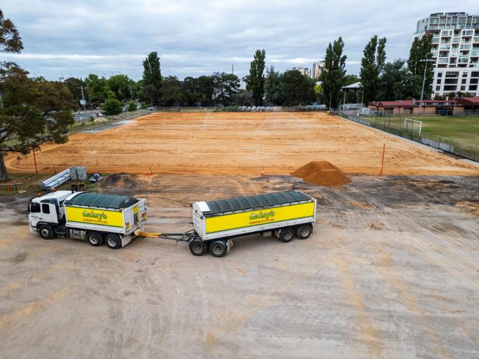 Development Victoria's new Ballarat Major Events precinct includes a world class athletics facility which is being constructed by BildGroup's TurfOne. Daisy's was contracted to supply over 3,000 tonnes of engineered Turf Sand for the field in this project.