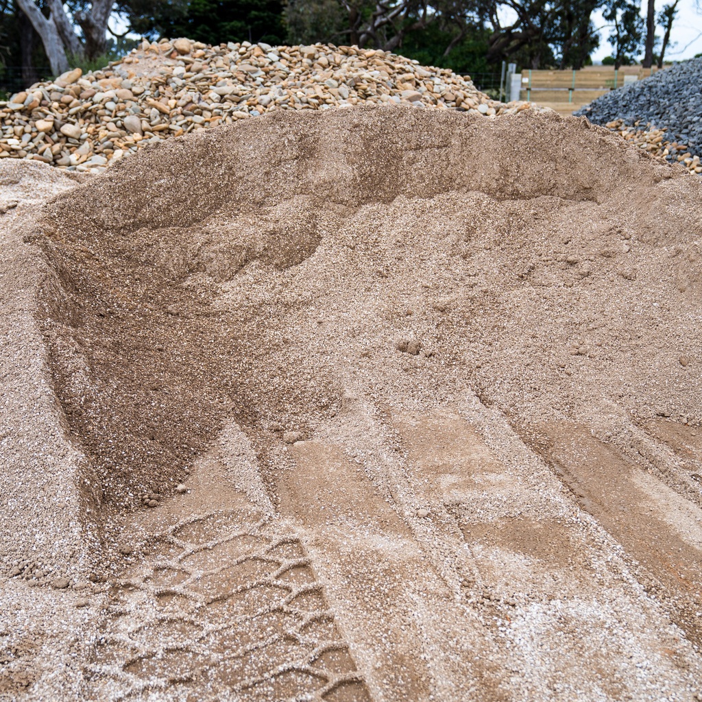 Granitic sand and 7mm cream pebbles for a decorative pathway finish or firepit